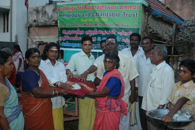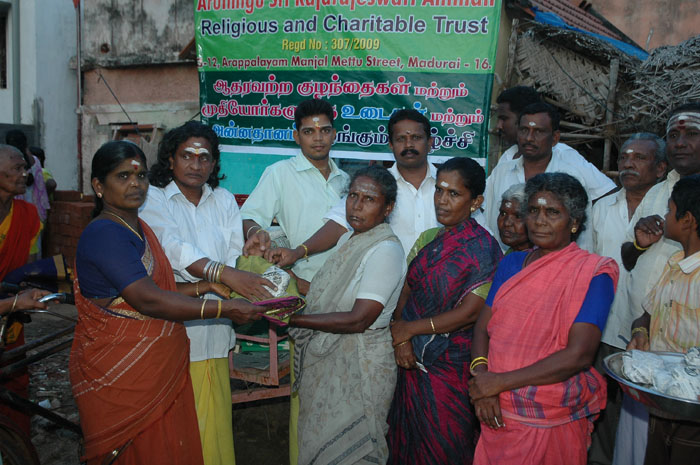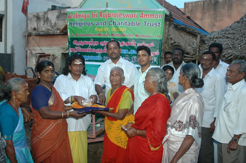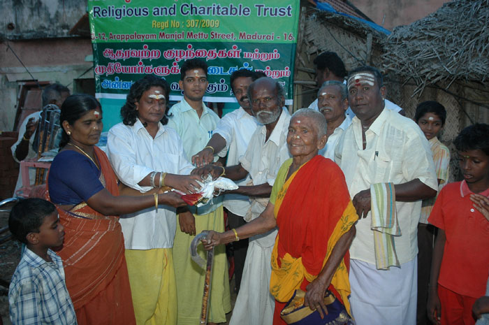 - Food and Clothes will be given - to orphans and old age people . ( கை கம்பு - walking stick)